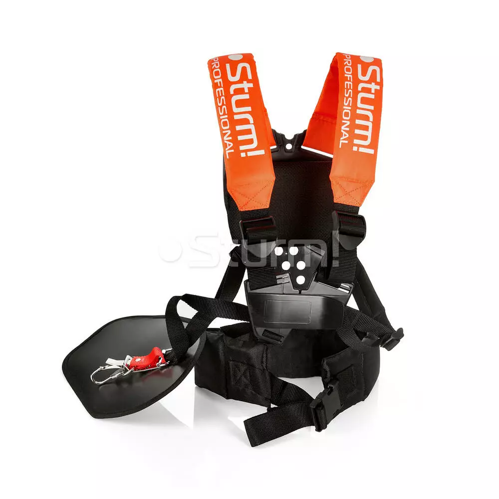 Професійний двоплечовий ранцевий ремінь для електричних і бензинових кіс. В основі моделі жорсткий каркас, за рахунок чого досягається зниження навантаження на хребет та її рівномірний розподіл від плечей до стегон. Для максимального комфорту при тривалій роботі плечові лямки обладнані м'якими накладками та мають значну ширину. Передбачена поясна фіксація – з її допомогою ремінь відмінно утримується, не перекошується у процесі роботи та не сковує рухи. Завдяки додатковим можливостям регулювання моделі легко можна налаштувати під користувача будь-якого зросту і комплекції. Також, ремінь Sturm BTA014S укомплектований енергопоглинаючою м'якою накладкою для захисту стегна.