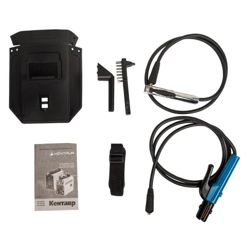 Комплектація зварювального апарату містить у собі все необхідне для проведення зварювальних робіт без додаткових витрат на купівлю інвентарю зварника. До неї входять захисна маска зварника, універсальний «молоток-щітка», а також потужний (300 А) і достатній для комфортної роботи зварювальний кабель із затискачем «маса» і зварювальний кабель з електродотримачем.