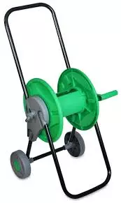Барабан для шланга Verano 72-776 із міцного пластику зі сталевими ручками та трансортними колесами.