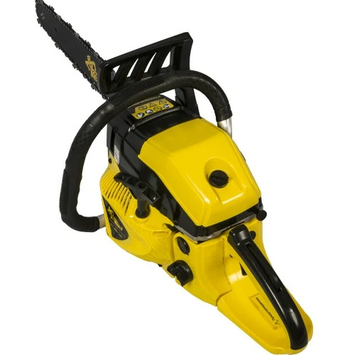 Двигун зі збільшеним моторесурсом (завдяки хромованому циліндру), легкий старт, сучасна антивібраційна система, що складається з ефективних демпферних опор, ефективний гальм ланцюга забезпечуватиме надійність виробу, зручність у роботі, а також швидке і точне розпилювання деревини. Потужність двигуна становить 3,3 л.с., максимальна частота обертання -; 11000 обертів за хвилину, що цілком достатньо для виконання робіт на присадибній ділянці будь-якої складності. Даний показник – ідеальний для виконання робіт у побуті, в тому числі і з деревиною великої щільності та діаметру. Для заправки бензопилу паливом і маслом використовують баки, місткістю 550 мл і 260 мл, відповідно. Дані показники дозволяють працювати виробом на протязі тривалої години без дозаправки. Для ефективного відведення вихлопних газів конструкцією глушника передбачено дві вихлопні труби.