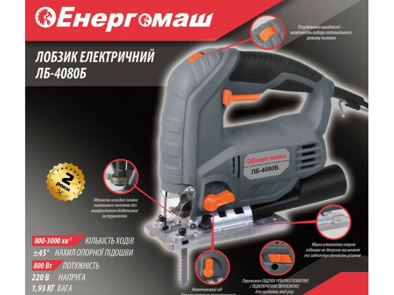 - Лобзик електричний Енергомаш ЛБ-4080Б;