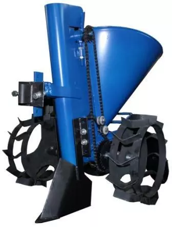 Однорядна ланцюгова картоплесаджалка призначена для посадки картоплі мотоблоком або мототрактором