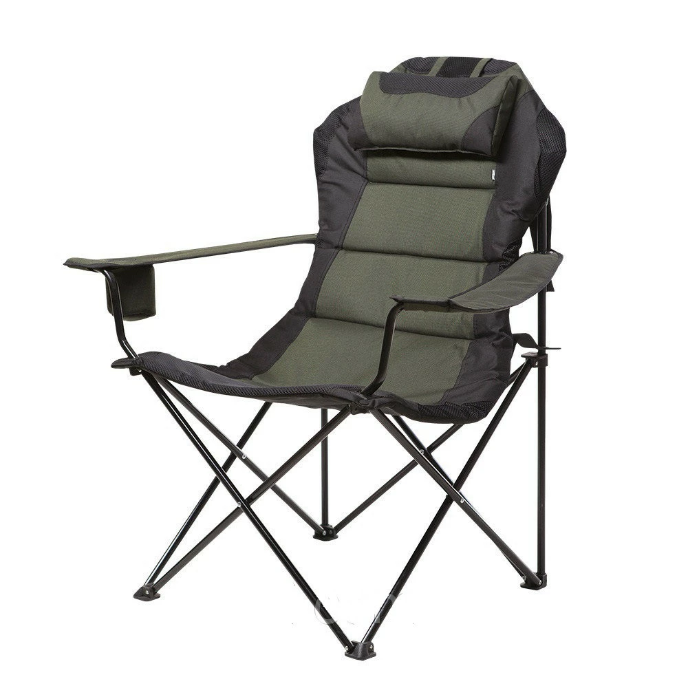 Крісло Майстер Карп зелений меланж-практичне, зручне крісло для любителів риболовлі та кемпінгу. Комфорт гарантований завдяки широкій м'якій спинці та регульованим підлокітникам. Крісло виготовлене з високоміцних матеріалів з м'яким поролоновим наповнювачем всередині. Компактні розміри крісла в складеному вигляді. Колір темно-зелений (хакі)