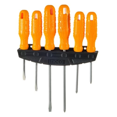 Набір викруток 6 шт INGCO містить у комплекті три викрутки з прямим шліцем та три викрутки з хрестовим. Інструменти використовують для закручування та відкручування кріпильних елементів з різьбленням.