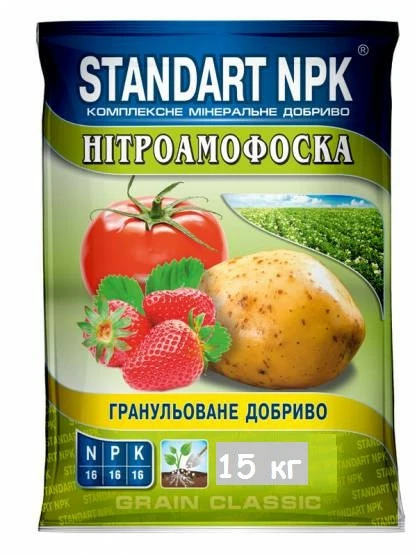фосфор: калій у %) 16:16:16.Середня витрата -15-20 г на