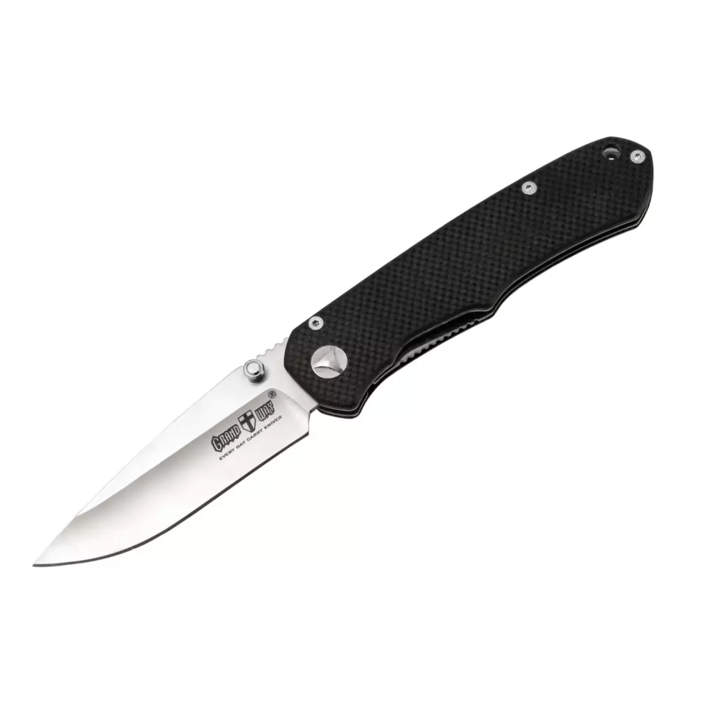 Ніж складаний Grand Way Е-109 -зчасовий складаний ніж з клинком з високоякісної нержавіючої сталі, додатково легованої молібденом та ванадієм. Збалансований склад сталі марки 8Cr13MoV забезпечує тривалу роботу без заточування, хорошу стійкість до іржі та високу міцність. Недовгий, масивний і міцний клинок, загартований до 59 HRC, має гарний різ і чудову проникаючу здатність. Приємний тягар ножу надають міцні сталеві. плашки рукояті та масивна фурнітура, що скріплює клинок та рукоятку. Відкрита конструкція на гвинтах дозволяє легко регулювати ніж, ремонтувати та чистити. Міцному складаному ножу потрібен надійний замок – ndash; у цьому ножі це добре себе зарекомендував лінійний замок «Liner Lock». Замок надійний у своїй простоті, відпрацьований у виробництві і вкрай невибагливий. Накладки на рукояті виготовлені з красивого та міцного дерева. Деревина, що використовується для виготовлення накладок, пройшла спеціальну обробку і стійка до вологи, гниття та шкідників. Теплі на морозі та приємні на дотик накладки мають гарну текстуру і чудово виглядають. Особливий шарм ножу надає болстер з деревини іншого кольору і текстури. Шпенек на клинку, а також конструкція замка дозволяють відкривати і складати ніж одній рукою. Наявність кліпси забезпечує зручне постійне носіння ножа з собою. Невеликий, ергономічний, міцний, надійний та універсальний ніж.