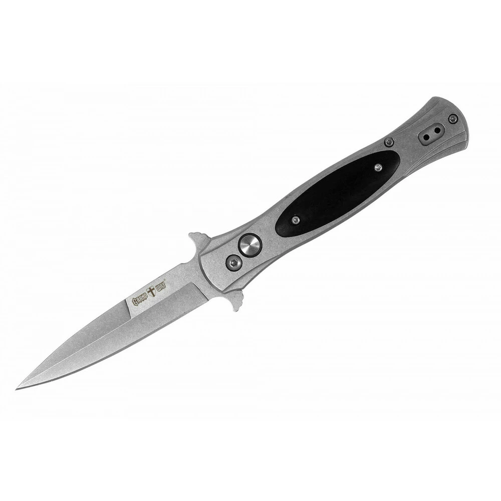 Ніж доладний Grand Way S-25 з бічним викидом клинка – є поєднанням витонченості та функціональності. Сталь списоподібного клинка – 8Cr13MoV. Твердість 58-59 HRC. Від кінчика до середини клинка по обуху тягнеться фальшльоз – така конструктивна особливість є відсиланням до родоводу подібних клинків, що ведуть свій початок від стилетів. Присутні на клинку і виступи-ріжки, що відіграють роль невеликої гарди та зручних упорів для великого та вказівних пальців при використанні ножа у розкладеному стані.