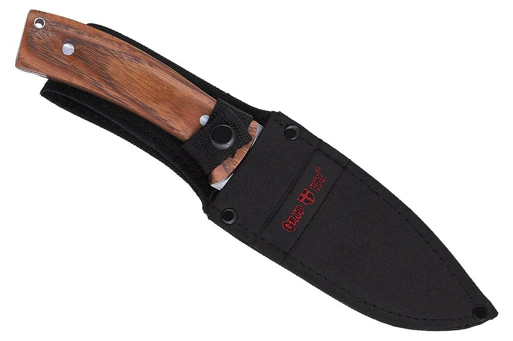 - фултанг з простою міцною рукояттю та великим, дуже функціональним мечем. Рукоять фактично є сталевий хвостовик клинка, покритий дерев'яними накладками. При цьому, незважаючи на свою простоту, рукоятка напрочуд комфортно і надійно лежить в руці. Клінок має довжину 135 мм, товщину по обуху. 2,7 мм та ширину 38 мм. Спуски прямі від самого обуха, приблизно половина якого зайнята фальшлезом. Поблизу рукояті на обух нанесена чіпка насічка під упор пальцем. Завдяки своїй геометрії, цей меч буде, як добре і без перешкод різати, так і цілком пристойно проколювати. Ніж "Гонча" зроблений так, щоб стати відмінним помічником у турпоході, на полюванні або рибалці і навіть на кухні. З різними господарсько-побутовими завданнями він впорається на оцінку "відмінно". Клінок виготовлений з нержавіючої сталі марки 420, що позитивно позначається як на його ціні, так і на корозійній стійкості. Противники 420-ки скаржаться на її нібито недостатню твердість, ми ж, у свою чергу відзначимо, що така пластична сталь дуже легко і швидко заточується і добре пручається сколам і фарбування. Для похідного ножа це вкрай корисні якості. "Гонча" створена в першу чергу не для полички (хоча і на ній вона буде виглядати ), вона створена для роботи. До того ж, її доступна ціна дозволить вам брати її з собою в будь-які складні походи без побоювання за дорогу колекційну річ.