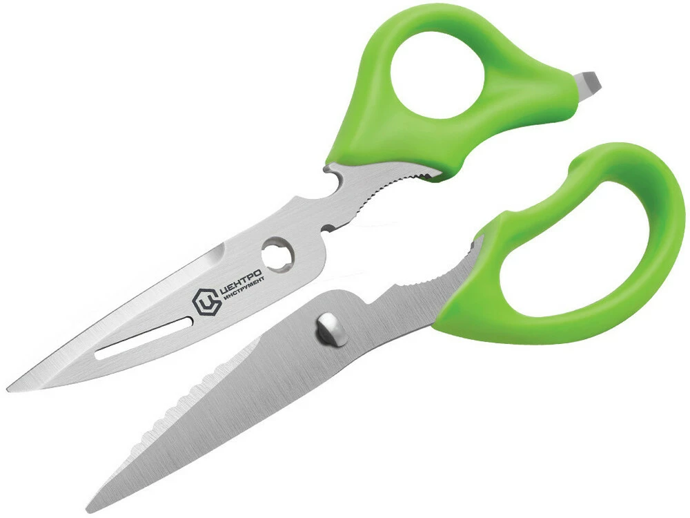 Ножиці унівесальні трасформер Центроінструмент 1385 мають унікальну конструкцію. Це ножниці-трасформери дозволяє знайти їм застосування скрізь. Леза зі спеціальної нержавіючої сталі ріжуть папір, картон, тонку жерсть, пластик, колять горіхи З їх допомогою ви легко обробите рибу та курку, спеціальний паз дозволить перекусити сталевий дріт.