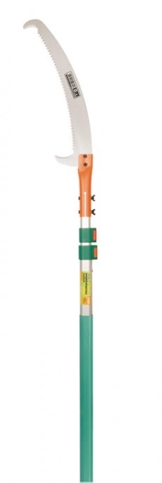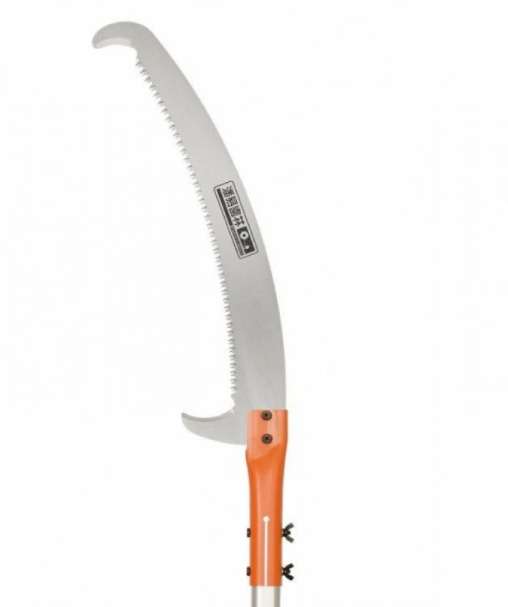 Ніжівка висотна штангова Mastertool 14-6904 має загальну довжину 2.5 м і служить для обрізання дерев. на висоті. Якщо гілка перевищує товщину 40 мм зрізати її секатором. навіть із посиленим храповим механізмом досить складно. У цьому випадку штангова пилка Mastertool 14-6905 буде просто незамінна. Сама ножівка виготовлена з марганцевої сталі. Форма "акулій зуб" з 3-D заточуванням кромки легко ріже найтвердіше і сухе дерево, не залишаючи при цьому глибоких пропилів - це важливо для швидкого загоєння місця камбієм. Крім того, саме лезо зігнутою формою зручно "лягати" на гілку, а на кінці і біля основи є спеціальні серпоподібні ножі для акуратного відрізу кори.