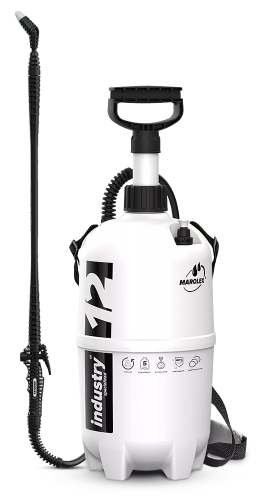 Обприскувач MAROLEX INDUSTRY ACID LINE 12 з тришаровим шлангом довжиною 170 см може виконувати безперервну роботу в будь-якому положенні. Одночасно з впровадженням у виробництво серії ergo, промислова індустрія придбала напрочуд легкий та зручний інструмент – стійкий до лугів обприскувач. Можливість регулювання кута струменя, простота обслуговування та надійність призводять до того, що його вибирають професіонали з усього світу. Дезінфекція обладнання При великих виробничих лініях легше дістатися недоступних місць за допомогою меншого обприскувача.