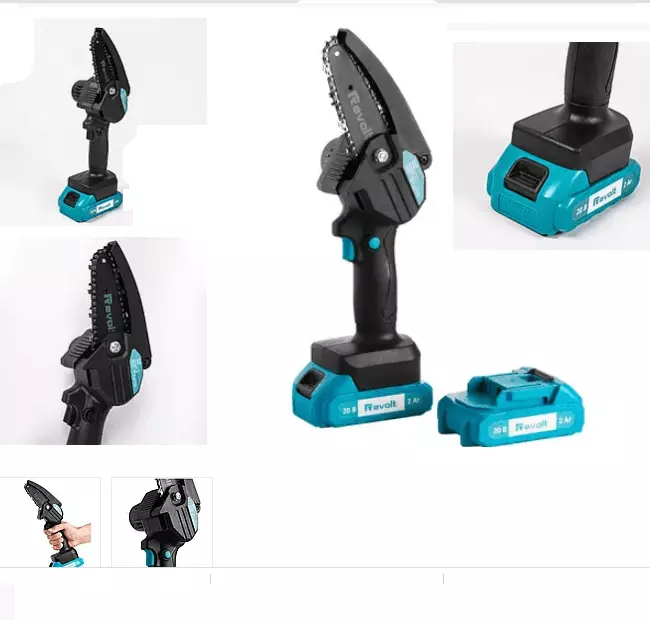 Характеристики Акумуляторна ланцюгова пила Revolt BCS 20/6 (20V) портативна міні-пила в кейсі 2 акумулятори для обрізки дерев та розпилювання дров