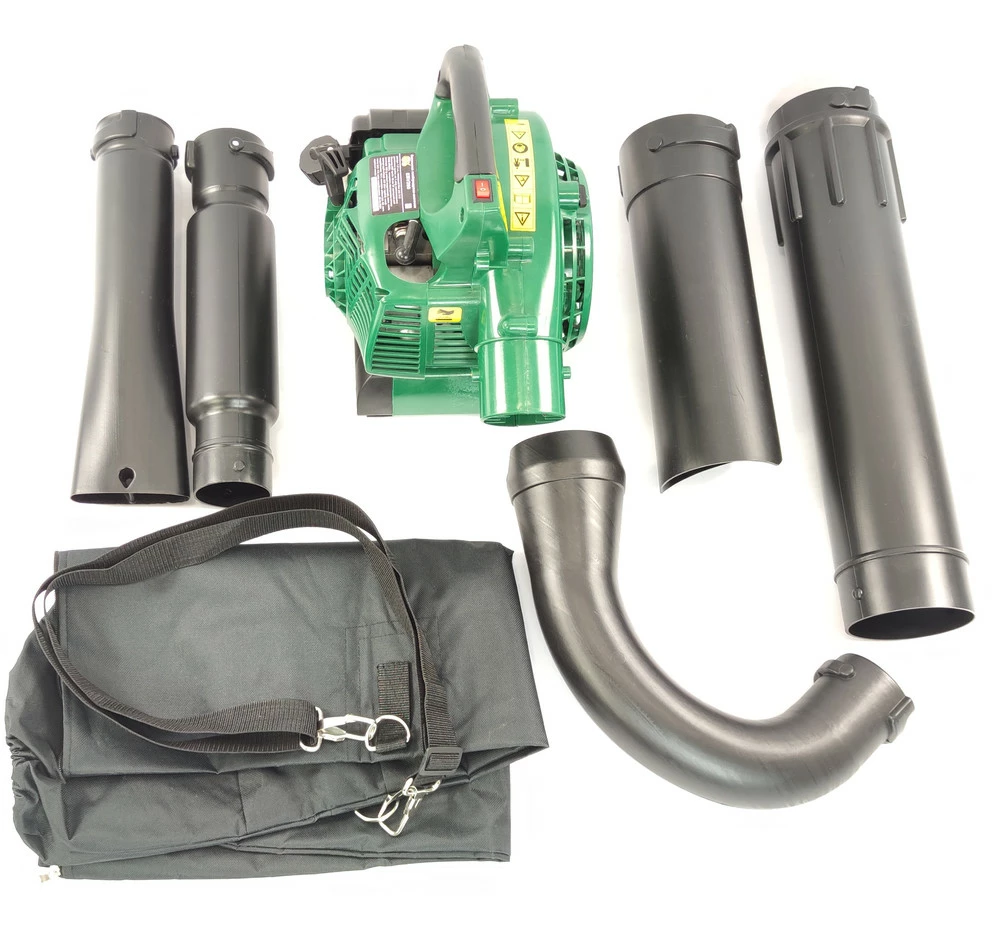 Серцем пилососа садового бензинового є двотактний бензиновий двигун, що забезпечує високу потужність та автономність від електричних точок живлення. Модель примітна двома режимами роботи: на всмоктування (садовий пилосос), і на видування (повітродувка), що значно розширює його сферу застосування. Працюючи як пилосос можна використовувати режим мульчування, завдяки якому в 12 разів зменшується обсяг сміття, що всмоктується в мішок, що дозволить рідше здійснювати його спустошення. Також варто відзначити наявність ременя для кращого розподілу навантаження та більш приємної роботи, а також необхідного приладдя в комплекті для обслуговування пристрою та зміни його конфігурації. доріжок, присадибних ділянок та інших територій від листя, гілок, різного садового сміття, а також пилу, свіжого снігу тощо.