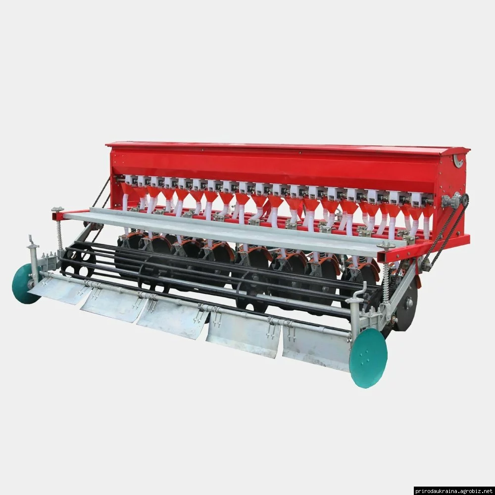 12-рядна зерно-тукова сівалка з дисковими сошниками та котушковим висівним апаратом для висіву зернових ( пшениця, ячмінь, овес) , бобових (горох.квасоля, соя, сочевиця,) культур,льону та близьких за розміром та нормами посіву до зернових (гречка, сорго, люцерна). Одночасно з посівом ведеться дозоване внесення гранульованих добрив. Сівалка має дискові передні вирівнювачі ґрунту для вирівнювання катком і польовими дошками та ущільнення поверхні після внесення насіння.