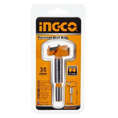 Свердло Форстнера 35 мм INGCO виконане з високоміцного сплаву з напайкою з карбіду вольфраму.