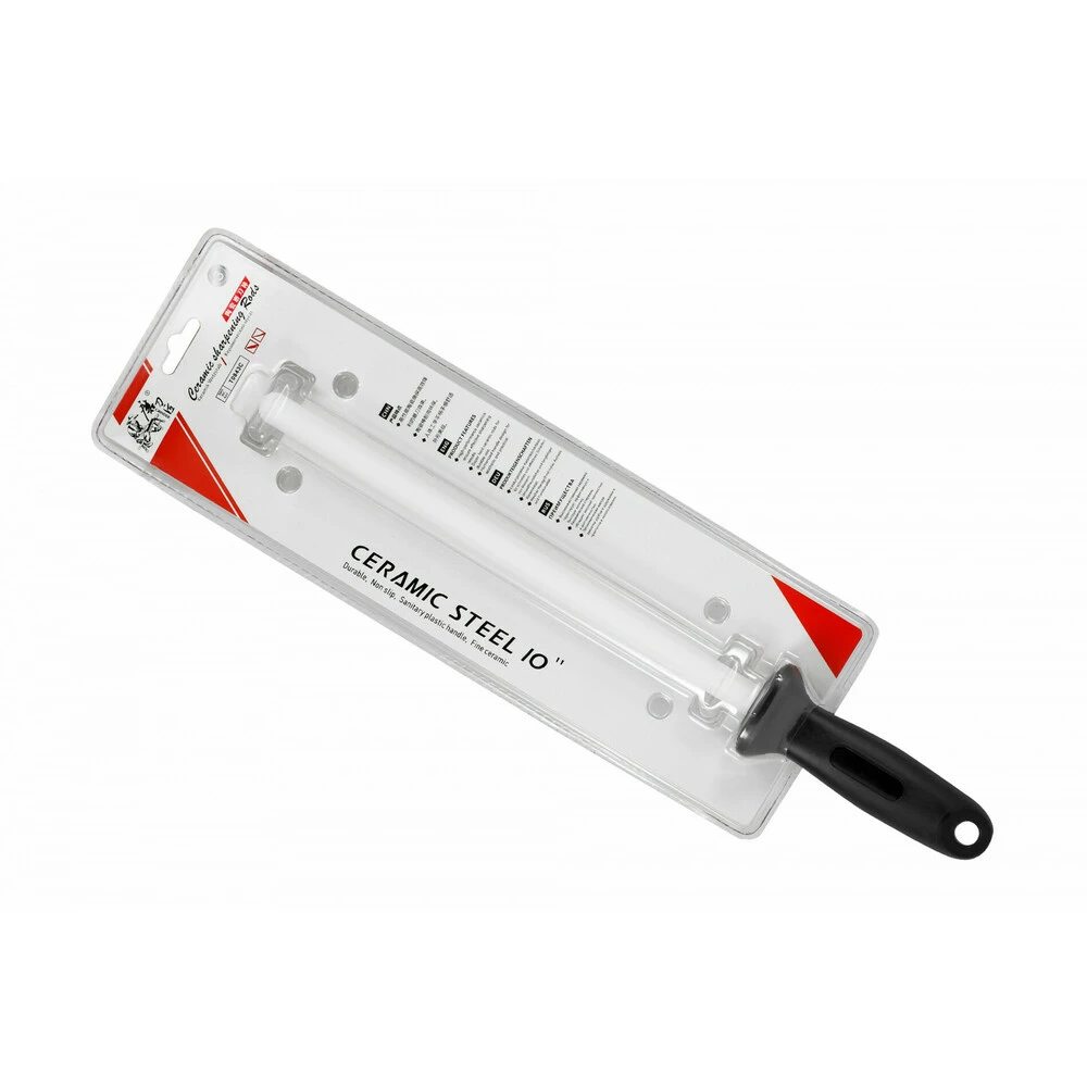 керамічна, зроблена у вигляді мусату. Вона складається з керамічного стрижня, що має параметри гритності #1000 та зручної пластикової рукояті. Призначається для редагування – швидкого відновлення «підсілий» різальної кромки ножів, ножиць, стамесок та іншого ріжучого інструменту. А також для підточування та фінішних робіт із заточуваним ножем. За рахунок цього точилка 0843 C універсальніша за класичний металевий мусат, яким ножі тільки правляться. :КЕРАМІКАТИП ЗАЛІЗКУВАЛЬНОГО ЛІЗА:ЗВИЧАЙНОВИСИНА,ММ:25ШИРИНА, ММ:45ДОВЖИНА, ММ:365МАСА, Г:225