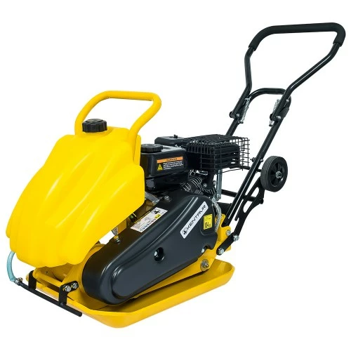 Складана ручка з м'якими гумовими вставками для оператора і узел для підйому у вигляді рами над двигуном дає змогу без проблем транспортувати пристрій навіть у легковому автомобілі. Також для зручності транспортування ця вібраційна плита має транспортувальні колеса. У комплект входить свічковий ключ.