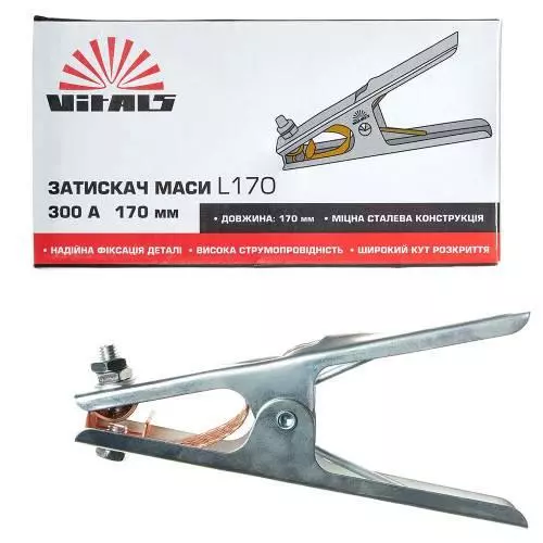 Затискач маси Vitals L170 300A - це необхідний аксесуар для проведення зварювальних робіт. Основна функція затиску - надійне з'єднання джерела живлення і деталі, що зварюється за рахунок міцної конструкції в поєднанні з потужною пружиною. p>